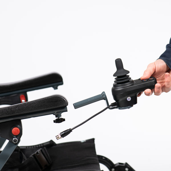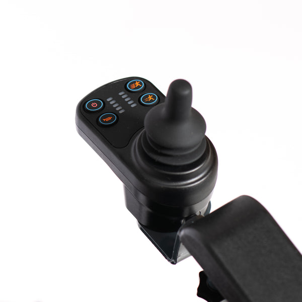 Easy joystick controls: 5 speeds, reverse, horn, and battery indicator. Can be fitted on the left or right side.