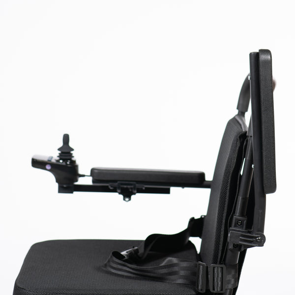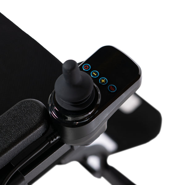 Easy joystick control: 5 speed settings, reverse, horn, and battery indicator. Can be fitted on either side.
