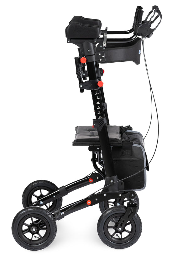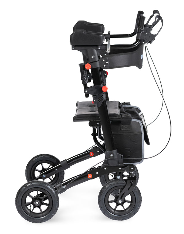 The NEW R-2 : Upright Rollator is designed to give you extra support while walking. The forearm supports help you stay upright and reduce strain on your wrists and hands. With a lightweight aluminium frame, quick-fold design, and large wheels, it is perfect for both indoor and outdoor use. The padded leather seat gives you a comfortable place to rest whenever you need. With Mobility Extra, you can count on trusted quality and friendly customer service.