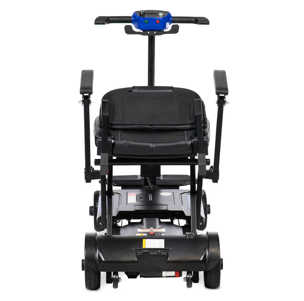 The SF-3: Autofolding Travel Scooter is designed for ease, comfort, and independence. With its remote control, you can fold and unfold the scooter at the touch of a button, no bending or lifting needed. When folded, it has a telescoping handle so you can pull it along like a suitcase. Compact, lightweight, and strong, it is perfect for travel, shopping trips, or days out with family. With Mobility Extra, you can rely on trusted quality and friendly customer support.